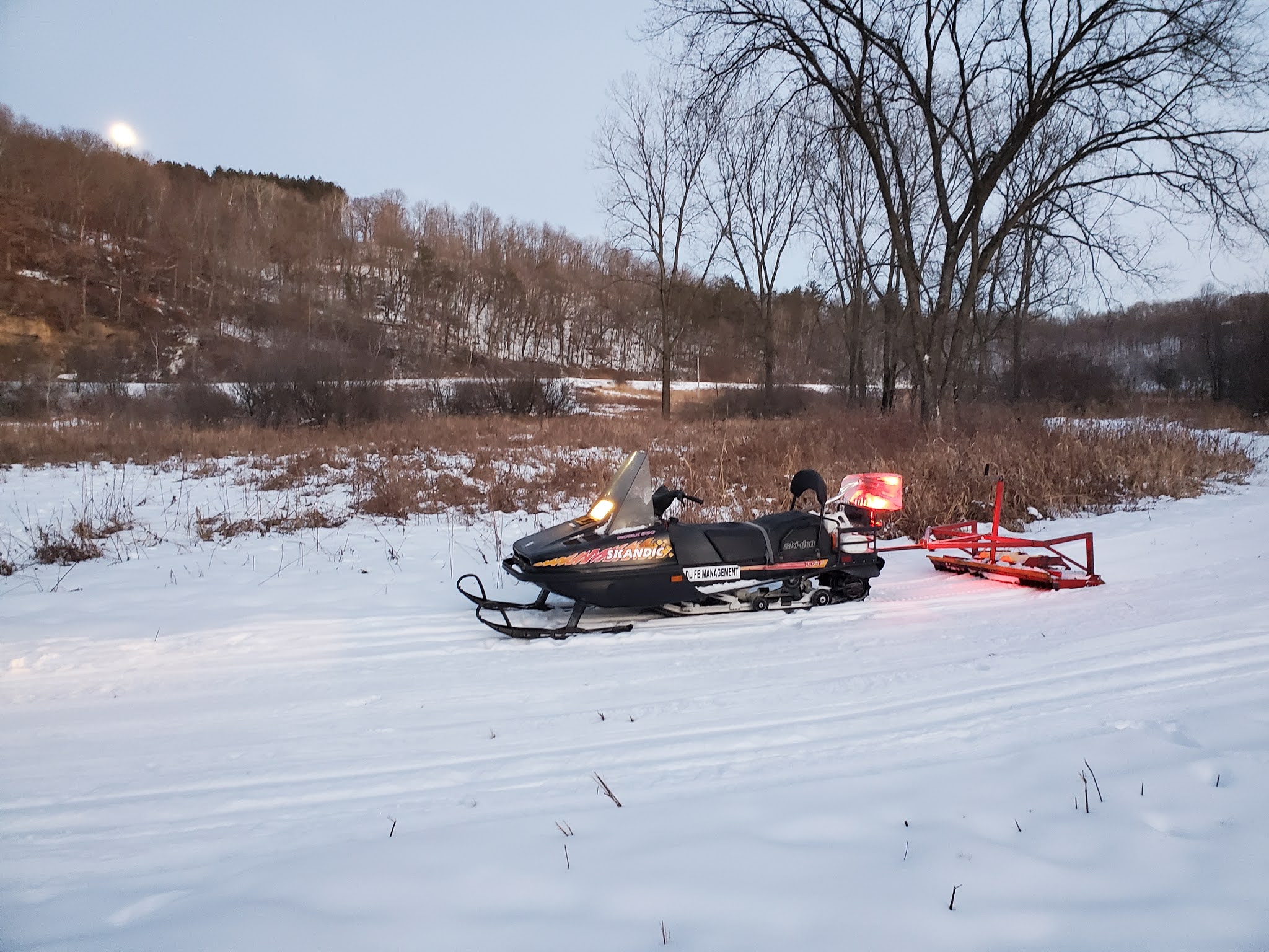 Sorry for the short notice. I went down and groomed the new snow Sunday evening. It looks better than I expected, and should set up pretty nicely. So, I will be down there Monday from 4:00 - 5:30 for a little ski session. All are welcome to join. I can give some lessons to kids and parents, or we can just ski around. I set track on Rod & Gun and also up on DNR. The DNR trails are still a little thin, with some ant hills, brush, etc. But, it is ski-able.